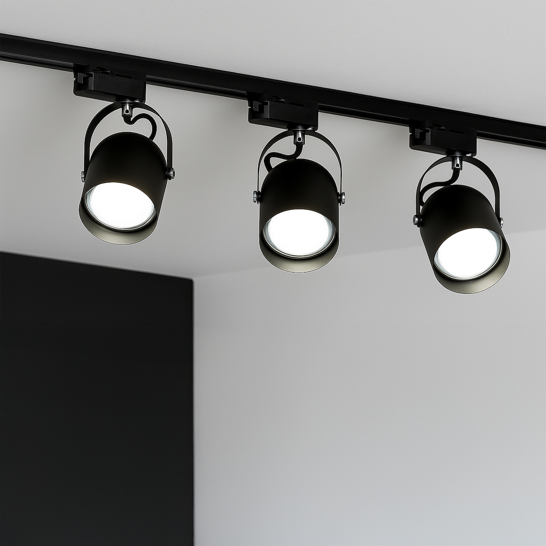Lampa szynowa 3-fazowa na żarówkę E27 - elegancja i pełna kontrola światła.