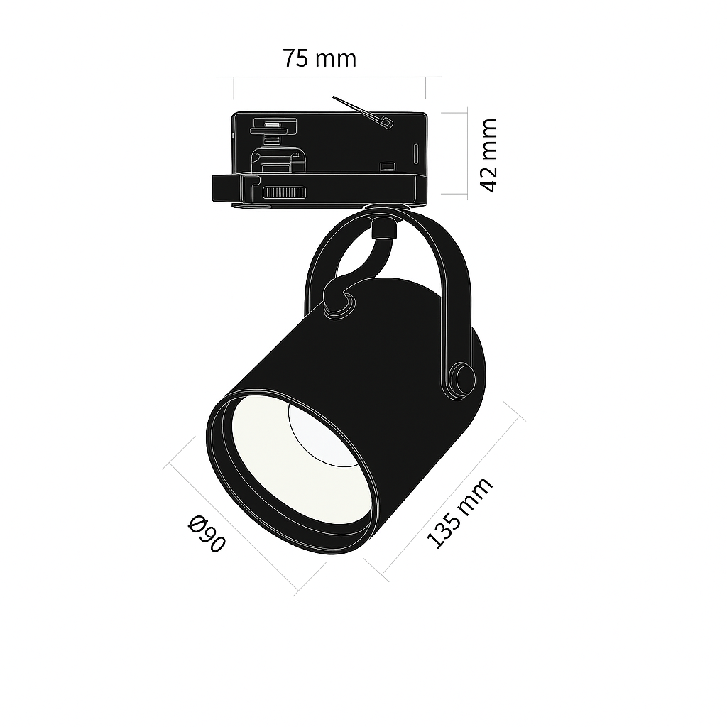 - Oprawa jest przeznaczona do standardowego systemu 3-fazowego. Nie pasuje do szyn 1-fazowych ani systemów magnetycznych.