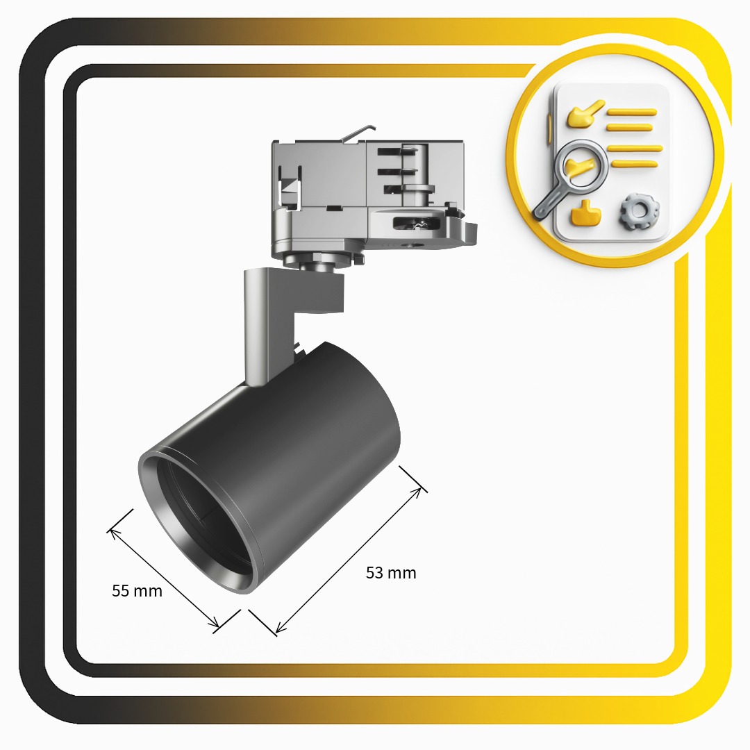 Oprawa szynowa LED GU10 czarna 3F IP20 aluminium 50W – nowoczesny spot