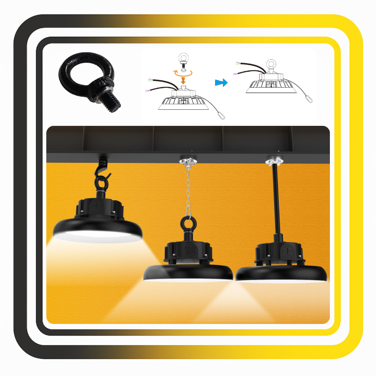 - Zamontuj oprawę na stabilnej konstrukcji (hak, linka lub uchwyt) z zachowaniem bezpiecznej odległości od sufitu.