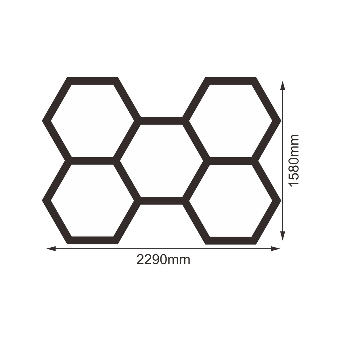 ✅ Zestaw składa się z pięciu dużych sześciokątnych modułów LED.